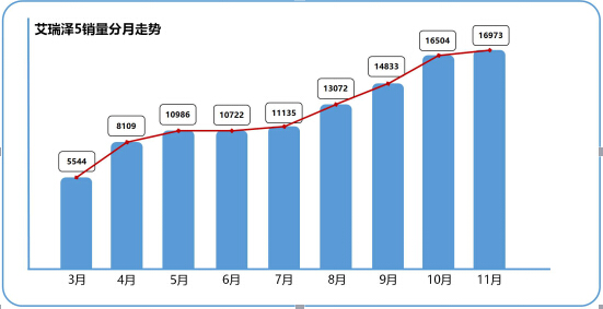 和SUV市場(chǎng)相比,自主品牌在轎車領(lǐng)域的表現(xiàn)一直差強(qiáng)人意,但是,今年奇瑞推出的一款中級(jí)家轎可謂是出盡風(fēng)頭,上市253天銷量突破10萬輛,11月份銷量達(dá)到16973輛,刷新了自主轎車新車型銷量增速記錄。在11月份舉辦的廣州國際車展期間,艾瑞澤5更是一口氣拿了11項(xiàng)大獎(jiǎng),堪稱拿獎(jiǎng)拿到手軟。