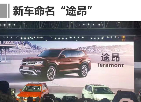 上汽大眾全新中大型SUV——Teramont在去年廣州車展上正式發(fā)布,并于同年11月30日在上汽大眾的整車生產工廠正式下線。在2017年1月18日全新途觀L的發(fā)布會現場,上汽大眾汽車有限公司總經理陳賢章向網通社表示:“上汽大眾全新中大型SUV Tearmont正式命名為途昂,并將于今年3月正式上市。”新車基于大眾MQB模塊化平臺打造,并配備了2.0T和2.5T渦輪增壓發(fā)動機。