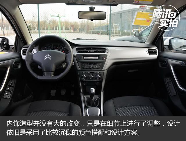 內(nèi)飾造型并沒有大的改變,只是在細(xì)節(jié)上進(jìn)行了調(diào)整,設(shè)計(jì)依舊是采用了比較沉穩(wěn)的顏色搭配和設(shè)計(jì)方案。中控臺的材質(zhì)還是硬塑料,做工和顏色搭配還算不錯,畢竟它是一臺雪鐵龍的入門級車型。三幅平底方向盤造型看著令人很有好感,而且手感也不錯,支持上下兩向調(diào)節(jié),并不能前后拉伸。指針式儀表盤黑底白字清晰易讀,表盤上新增了雪鐵龍法文LOGO和三叉星式圖案,上方顯示屏的顏色也從紅色變?yōu)榱税咨6嗝襟w系統(tǒng)功能比較單一,可以提供收音機(jī)和通過底部USB接駁外部音源。