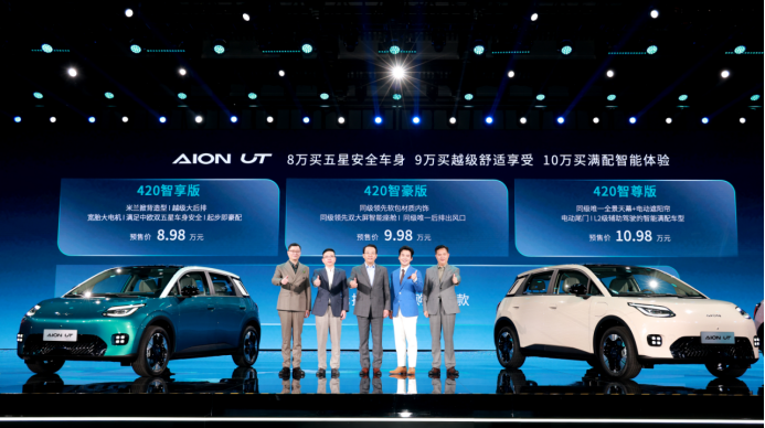 央廣網(wǎng)北京1月15日消息(記者 姜鵬)1月6日,埃安UT鸚鵡龍正式開啟預(yù)售,新車共推出420智享版、420智豪版、420智尊版3個(gè)版本,預(yù)售價(jià)8.98萬(wàn)元-10.98萬(wàn)元。