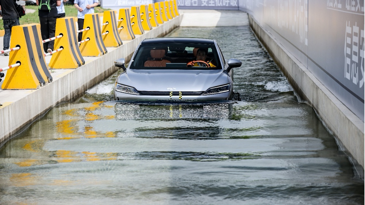 在鐵人三項中,同一輛風(fēng)云A9L模擬極端環(huán)境與事故場景,先經(jīng)過超越國家4倍標準的400mm深水區(qū),隨后又以40km/h時速、40mm重疊量完成刮底實驗,并以超越行業(yè)通常做法2.95~3.36倍的55km/h的速度完成中心柱碰。三大實驗后,車輛動力系統(tǒng)完整,電池包無泄漏且絕緣電阻穩(wěn)定在500Ω/V以上。