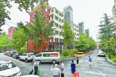 蓮花池西里6號院改造后煥然一新,電梯平層入戶,綠樹映襯紅墻,居住條件顯著改善。本報(bào)記者 鄧偉攝