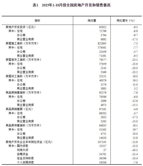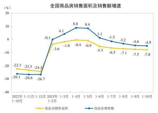 | 國(guó)家統(tǒng)計(jì)局:1—10月份商品房銷售面積同比下降7.8% |