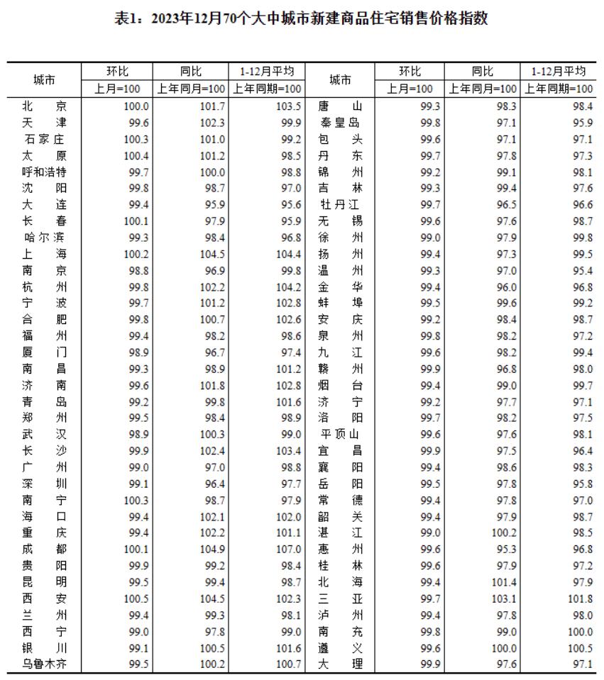 中新網(wǎng)1月17日電 1月17日,國(guó)家統(tǒng)計(jì)局公布的數(shù)據(jù)顯示,2023年12月份,70個(gè)大中城市中,各線城市商品住宅銷(xiāo)售價(jià)格環(huán)比下降、同比有漲有降。