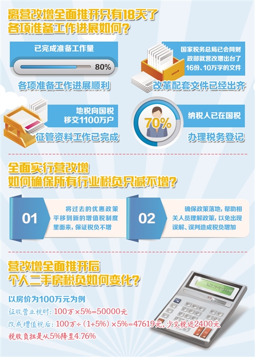 記者:營(yíng)改增試點(diǎn)涉及范圍廣,改革難度高,離全面推開也只剩不到20天。當(dāng)前各項(xiàng)準(zhǔn)備工作進(jìn)展如何?