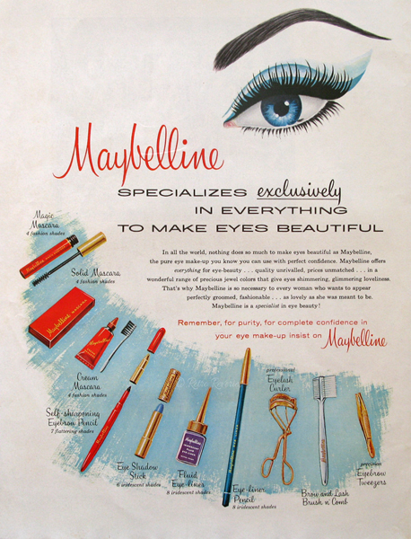 就這樣,全世界第一支Mascara(睫毛膏的英文名)的身世了,同時這也是全球第一代眼部化妝品。在1915年,Tom把妹妹名字(Mabel)和凡士林(Vaseline)的英文拼寫組合在一起,把公司命名為美寶蓮紐約(Maybelline)。