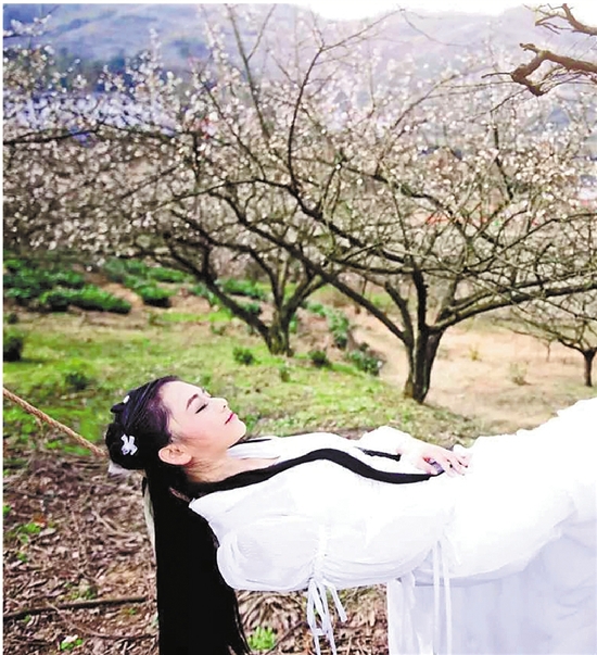 浙江在線03月22日訊(錢江晚報通訊員陳玉婷 記者苗麗娜)盛開的香雪梅海間,一個女孩白衣勝雪。或舞劍瀟灑不拘,行云流水;或輕曳秋千,靈動輕盈;或側顏微笑,嬌美動人。