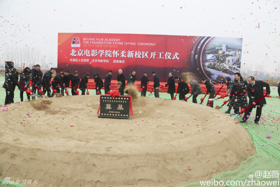 12月25日,北京電影學(xué)院懷柔新校區(qū)開工儀式舉行。趙薇、黃渤作為資深校友現(xiàn)身奠基儀式,穿羽絨服鏟土。趙薇贊“地杰人靈之地!”