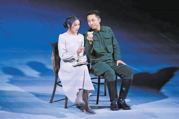 青年導(dǎo)演張彤向來(lái)擅長(zhǎng)細(xì)膩深沉的風(fēng)格,《華沙旋律》延續(xù)了這種基調(diào),以兩個(gè)年輕人的悲劇折射出對(duì)和平、和解等永恒命題的當(dāng)代探尋。張可盈、杜子俊飾演的格里婭、維泰克在舞臺(tái)上剖開(kāi)愛(ài)情的甜蜜與現(xiàn)實(shí)的苦澀,每當(dāng)他們的愛(ài)意向前一步,盤(pán)桓在格里婭心頭的恐懼又將他們狠狠撕扯。