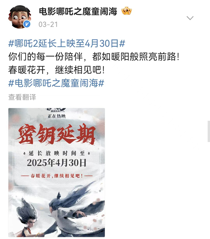 延長上映的《哪吒之魔童鬧?!放c即將重映的《熱烈》,成為這個清明檔不可小覷的隊伍。上映近兩個月來,《哪吒之魔童鬧?!芬廊焕卫巫€(wěn)票房日冠,不斷刷新影史記錄,為了更好的觀看體驗,許多觀眾“為一塊屏奔赴一座城”,在清明節(jié)假期,這樣的影旅聯(lián)動依然有可能繼續(xù)。