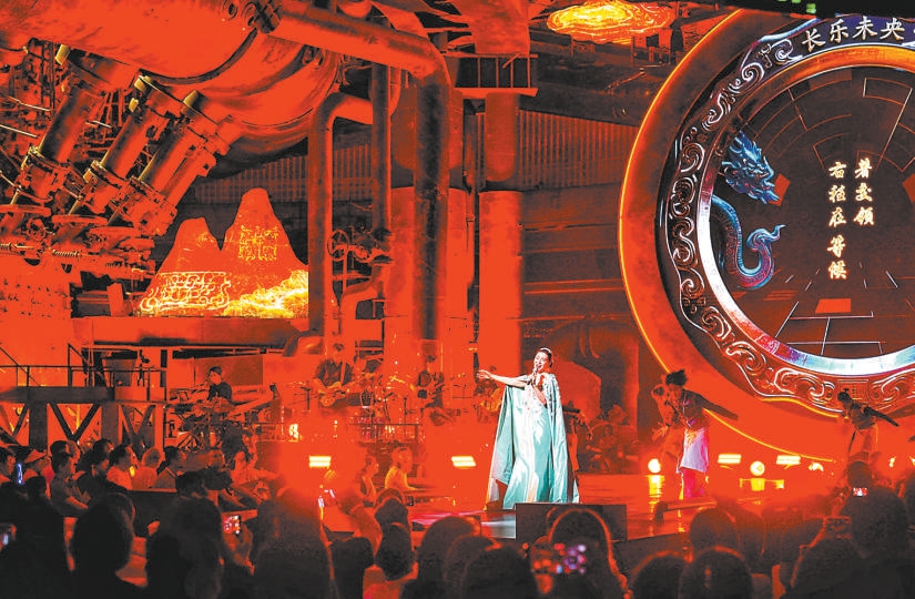 “在這里唱歌,能感受到歷史與未來(lái)的雙重回響?!毖莩鼋Y(jié)束后,常思思感慨道。她透露,為了適應(yīng)三高爐特殊的聲場(chǎng)環(huán)境,團(tuán)隊(duì)專門(mén)調(diào)整了電聲樂(lè)隊(duì)與弦樂(lè)團(tuán)的配器編制,讓音樂(lè)在工業(yè)空間中產(chǎn)生更具張力的共鳴。一夜歡歌,常思思用藝術(shù)的柔美與工業(yè)的粗糲對(duì)話,在首都北京留下獨(dú)特的文化記憶,“藝術(shù)家應(yīng)當(dāng)成為連接不同時(shí)空的橋梁,我們讓鋼鐵聽(tīng)見(jiàn)了歌聲,也讓歌聲記住了鋼鐵?!?/p>