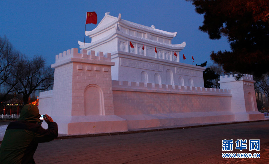 1月5日,長春,第三屆南湖公園雪雕展已全部完工,總造雪量一萬多立方米。共分為三個(gè)區(qū)域即迎賓區(qū)、歡樂區(qū)、復(fù)興區(qū)。