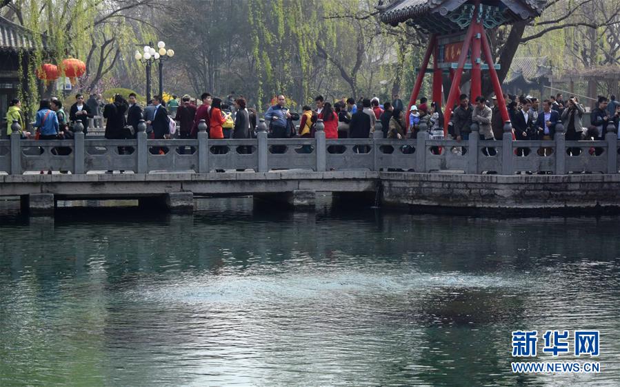 3月22日,濟南趵突泉水位跌破紅色警戒線,噴涌乏力。當(dāng)日,濟南趵突泉實時水位降至27.59米,跌破27.60米的紅色警戒線,面臨停噴危險。趵突泉水位走低的主要原因是春季干旱及春灌的影響。新華社記者 徐速繪 攝