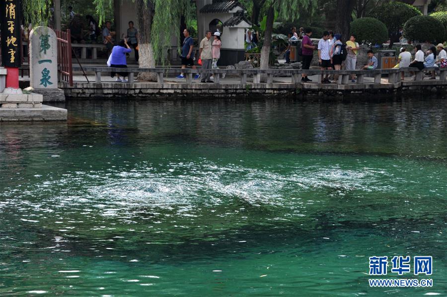 受近期雨水充沛的影響,以趵突泉為代表的濟南市區(qū)名泉紛紛復(fù)蘇,基本恢復(fù)了正常噴涌的景觀。 新華社記者 徐速繪 攝