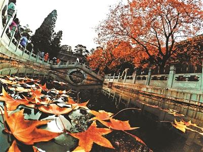 昨天上午,香山風來霾散,游客開始增多。香山公園管理處相關負責人介紹,“上周末是香山賞紅的最高峰,兩天游客數(shù)量達到17萬人次。不過本周末也有十多萬人參觀游覽。”