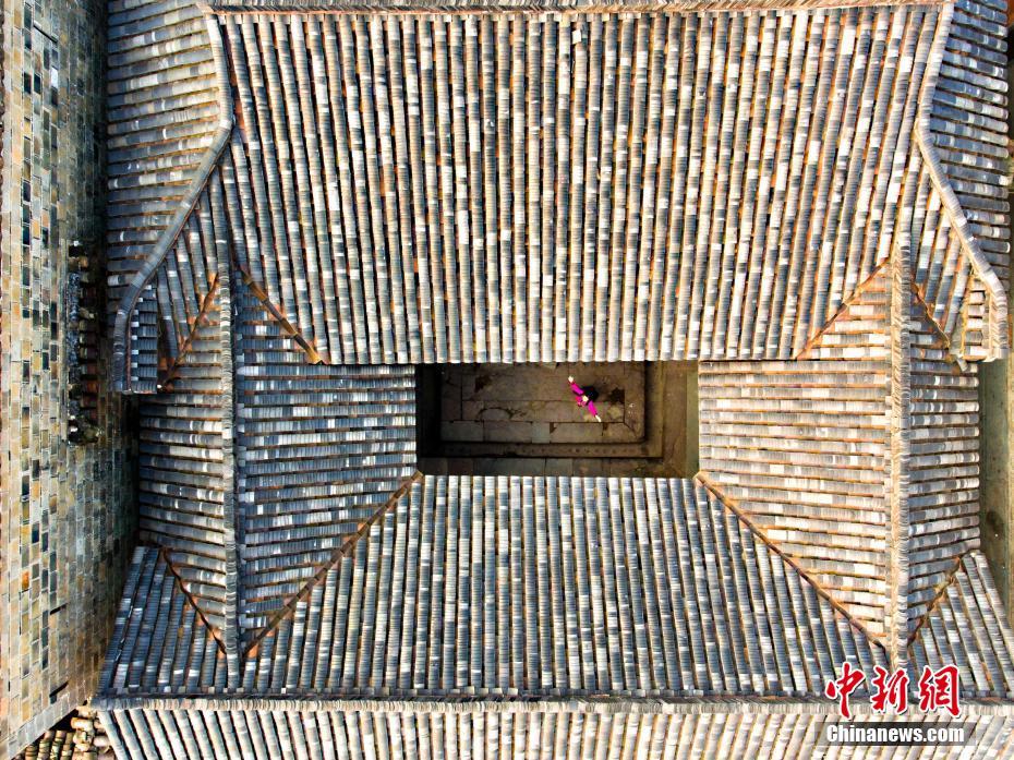 12月10日,航拍位于江西金溪縣有著600多年歷史的中國歷史文化名村、中國傳統(tǒng)村落竹橋古村,俯瞰全村,形似一柄巨扇。該村現(xiàn)保存有明代所建民居8幢,明代祠堂1幢,其余為清代建筑,青磚灰瓦,樸實素雅,為贛派建筑最典型的代表。村前溪水長流,良田萬頃,村后茂林修竹,鳥鳴樹幽,身歷其境,如入畫中。傅建斌 攝
