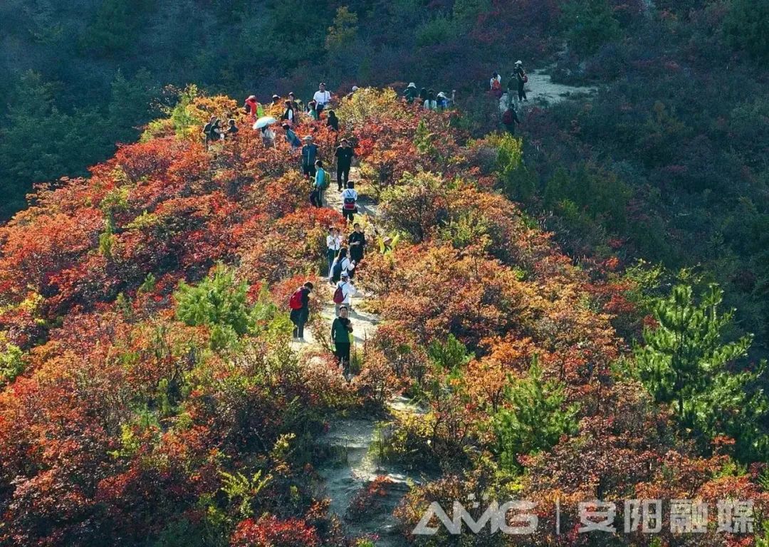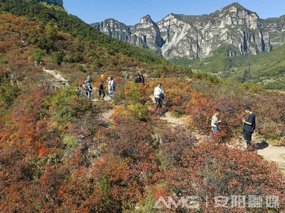??10月14日,河南安陽林州石板巖鎮(zhèn)韓家洼村紅葉漫山,層林盡染,吸引著各地游客前來觀賞。據(jù)悉,韓家洼村地處林州市太行深山之中,每年秋季,這里的紅葉較其他地方紅得早。(圖:曲海慶/攝)