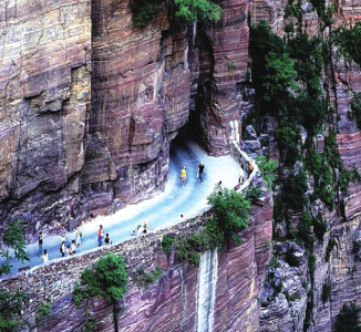 在太行山脈的晉豫交界帶,是我國第一階梯和第二階梯的分界線。在山脈的東西兩側(cè),地勢險(xiǎn)要,垂直落差極大,形成了一座座筆直陡峭的懸崖絕壁,也構(gòu)造了大自然鬼斧神工的絕佳壯美奇景,卻也因此地形阻礙了大山居民的出行之路,千百年來的大山人民過著與世隔絕的生活。到了20世紀(jì)五六十年代,大山的居民們以愚公移山的精神,克服重重苦難,在懸崖峭壁上一錘一斧開出了一條條連接大山與外界的“掛壁公路”。