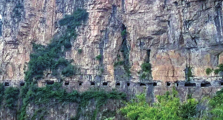 第二處的錫崖溝掛壁公路位于山西晉城市陵川縣境內(nèi),公路整體曲折蜿蜒,呈“之”字形,分三層攀上山頂,險(xiǎn)峰云海,景色壯觀。而錫崖溝村則是四面環(huán)山、高山飛瀑,風(fēng)光絕佳。在公路修通前,由于交通閉塞,錫崖溝村的居民們世代過著與世隔絕,自給自足的生活。目前,錫崖溝村是王莽嶺景區(qū)的一個(gè)景點(diǎn),在游覽完王莽嶺后可以乘坐游覽車穿過錫崖溝掛壁公路。但由于錫崖溝掛壁公路地勢十分險(xiǎn)要,所以游覽車一般不在途中過多逗留。