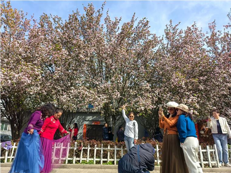 山西日報新媒體記者吳曉慶報道 清明時節(jié),一場綿綿春雨過后,太原杏林七條盛放的海棠讓人們邂逅了一場美不勝收的花海。粉白相間的海棠、富有年代感的木門與灰色的磚墻,優(yōu)雅中帶著古典,古典中又透著浪漫的氣息,清明小長假,許多市民身著艷麗的服裝,前來這條位于桃園三巷附近的“網(wǎng)紅”小巷打卡留念。