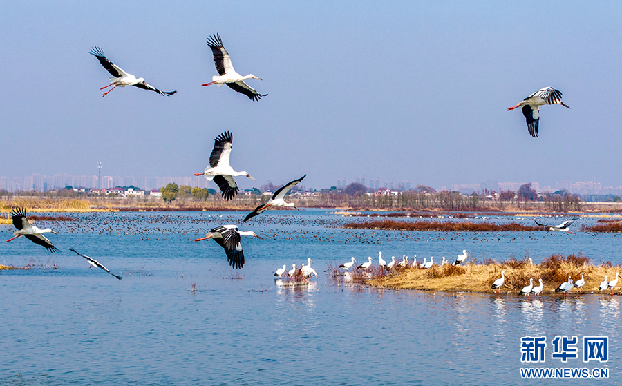 近年來,廬江縣加大黃陂湖濕地保護力度,4萬多畝的濕地環(huán)境得到較大改善。每年冬季,東方白鸛、白鶴等大量珍稀候鳥都按時來此過冬,萬鳥齊飛的壯觀場面已經成為廬江縣黃陂湖濕地最靚麗的風景。新華網(wǎng)發(fā)(左學長 攝)