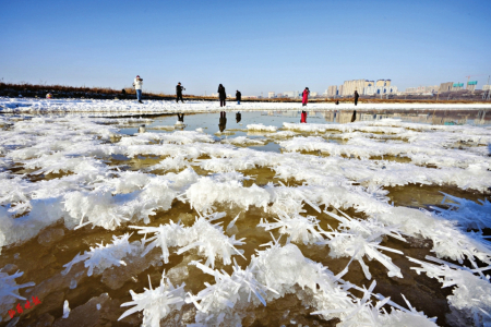 6.晶瑩剔透的鹽湖硝花,吸引了不少攝影愛好者前來(lái)創(chuàng)作。