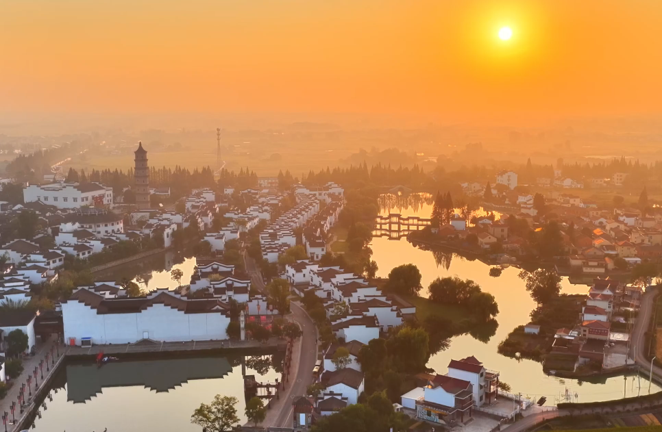?秋日清晨,位于安徽省銅陵市的犁橋水鎮(zhèn)在晨霧中蘇醒。放眼望去,白墻黛瓦的徽派民居錯(cuò)落有致,與湖畔倒影、街旁的金色稻田共同構(gòu)成一幅和諧的江南秋景圖。