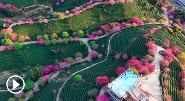 近日,福建漳州臺(tái)品櫻花園的櫻花悄然盛放,漫山遍野的櫻花與層層疊疊的茶山交相輝映,粉紅花海點(diǎn)綴翠綠茶壟,構(gòu)成一幅生機(jī)勃勃的春日畫卷。