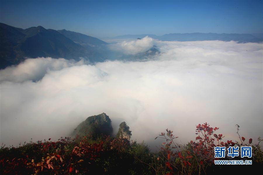 2016年11月11日 巫峽云海 這是11月11日在巴東大面山拍攝的巫峽云海景觀。當(dāng)日,地處湖北恩施的長江三峽巫峽口云霧繚繞,與漫山遍野的紅葉相映成趣。 新華社發(fā)(文振效 攝)