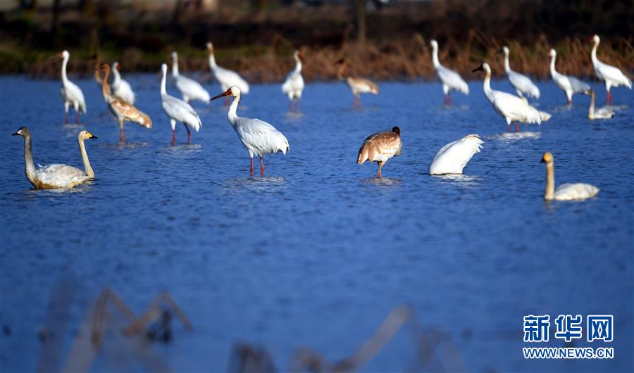 受新一輪北方冷空氣南下影響,江西鄱陽湖越冬候鳥數(shù)量激增,一年中最佳的觀鳥時節(jié)到來。江西鄱陽湖國家級自然保護(hù)區(qū)管理局近日監(jiān)測顯示,飛抵保護(hù)區(qū)的候鳥總數(shù)達(dá)到16萬只,主要包括大雁、小天鵝、白鶴、東方白鸛等。