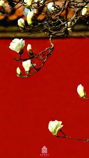 其實,早在放送杏花美照之前,已經(jīng)有玉蘭出鏡了。仲春,紫禁城里難覓迎春花的蹤影,所以玉蘭擔(dān)起了“迎春”的職責(zé)。同樣是紅墻琉璃瓦的旁邊,玉蘭花迎著輕柔的陽光,沐浴在春日的暖風(fēng)里。