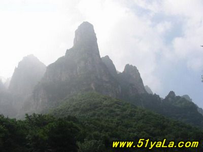 五老峰史稱(chēng)東華山,歷史上為北方道教名山,海拔1809.3米,奇峰險(xiǎn)峻,需攀鏈而上,屬丹霞地貌。這里是層層峰巒,森林古木,各種生物覆蓋著整個(gè)山野。花紅草綠,山光水色,風(fēng)光旖旎非凡,故有“北有五臺(tái)觀庫(kù)存宇,南在五老看風(fēng)光”之說(shuō)。游人往縣城西南遠(yuǎn)眺,見(jiàn)有東錦屏峰、西錦屏峰、太乙坪峰、棋盤(pán)山峰四山峰仙態(tài)神姿,隱現(xiàn)于云煙蒼茫之中,將高1809.3米的玉柱峰環(huán)抱其中,“有偃蹇傴樓之伏”,猶如五位老人抱拳作揖迎貴賓之勢(shì),故名五老峰。