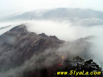 北武當(dāng)山主峰四周幾乎都是陡壁懸崖,只有一條人造“天梯”可攀。來(lái)到山腳下,過(guò)五里黃土、五里沙路,便是1400余級(jí)就山鑿筑的石階,凡險(xiǎn)峻之處,設(shè)有鐵索扶手。石階一線疊置,從下仰視,宛如“天梯”。游人攀登,每一步都可聽(tīng)到悠揚(yáng)頓挫的“石音”,形成獨(dú)特的“石樂(lè)”絕景。沿著石階,奇松異石、廟宇石刻,掩沒(méi)在蔥郁的山林植被之中,相間點(diǎn)綴,相映成趣。主要的山石景觀有:古猿望日、石豬受難、九龍出洞、石象守山、天壺傾露、石羊朝圣、石龜下蛋、石虎、石蛤蟆、龜蛇斗智等。最令人稱奇的是“龜蛇斗智”奇觀,相傳神龜和青蛇不安心修道,互相格斗,經(jīng)過(guò)七七四十九天的麈戰(zhàn),神龜節(jié)節(jié)敗退,青蛇步步緊逼。其時(shí),恰逢真武大帝返宮,見(jiàn)狀,輕輕用手指一點(diǎn),龜蛇便動(dòng)彈不得,從此永久停留在這里,成千古一絕——“蛇石”虎視眈眈,“龜石”尾臨懸崖,萬(wàn)斤重石,峭立崖畔,用力一推或經(jīng)風(fēng)一吹,便搖搖欲墜,令人心懸,所以又稱風(fēng)動(dòng)石,為我國(guó)罕見(jiàn)的景觀之一。主要的奇松景觀有:鴛鴦松、迎客松、托天松、母子松等。最使人嘆為觀止的是“擎天探海松”,其松立于石階半道,樹(shù)身技分兩杈,一直刺青天,一枝瞰群峰。近金頂?shù)悄咸扉T石階,旁邊陡崖上刻有“喬松”二字,據(jù)載為清代道光年間永寧州牧王繼賢手跡?,F(xiàn)存喬松樹(shù)樁直徑近1米,可以想見(jiàn)其昔日雄姿。主要的懸崖峭壁有:千仞壁、舍身崖、鷹嘴崖等。還有呈垂直分布的植被,其色彩和花期隨季節(jié)變化,給北武當(dāng)山披上了“春粉、夏艷、秋紅、冬白”的盛裝。登臨武當(dāng)之巔,一覽眾山,但見(jiàn)遠(yuǎn)山蒼茫,近日含黛,松風(fēng)撲面,白云飄逸;只聞松濤陣陣,山泉潺潺,鳥(niǎo)語(yǔ)唧唧,似琴弦輕撥;夏秋之季,如晴空萬(wàn)里,金頂之下,叢林景觀相間,似七彩織錦;白云遠(yuǎn)處,群山連綿,猶如萬(wàn)龍翻騰,極為壯觀。