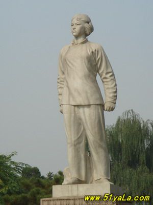 劉胡蘭(1930-1947),中國共產(chǎn)黨黨員,1946年參加革命,1947年山西軍閥閻錫山的軍隊突然襲擊時被捕,英勇不屈,在敵人鍘刀下壯烈犧牲。毛澤東曾在當時《晉綏日報》上為之題詞:“生的偉大,死的光榮?!?/p>