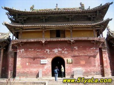 廟始建于唐,金大定二十四年(1184年)重建,明洪武二年(1369年)及清末均有修葺。規(guī)模壯觀,山門前平臺凸起,兩側(cè)石階對峙,左右配以廊廡。山門高居正中,門側(cè)又各建掖門一道,門樓秀麗,雕刻精巧,與一般佛寺外觀截然不同。