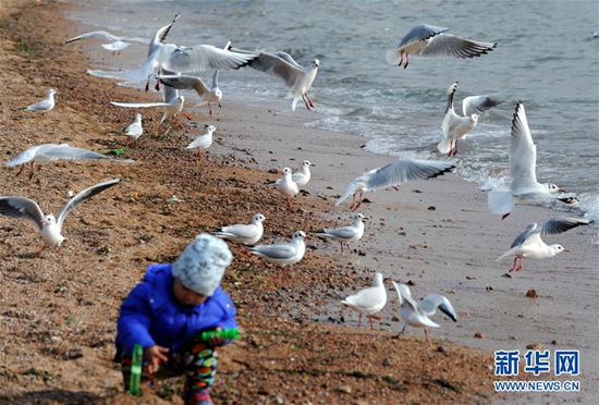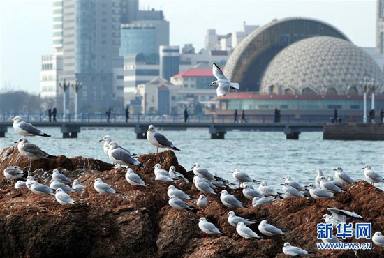 每到冬季,大批海鷗從西伯利亞等地飛臨青島越冬避寒,它們多集中停留在青島沿海一線,吸引眾多市民和游客前來觀賞和拍攝。新華社記者 李紫恒攝
