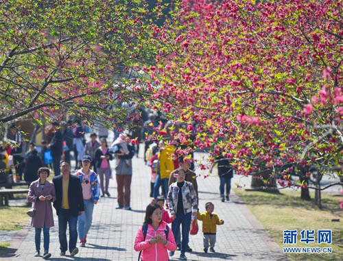 3月11日,游人在福建農(nóng)林大學校內(nèi)賞花。 新華社記者 宋為偉 攝