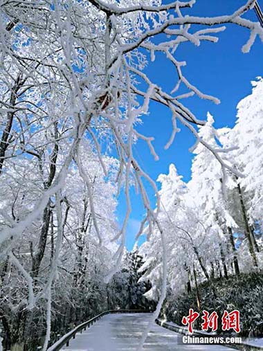 湖北現(xiàn)“林海雪原” 銀裝素裹風景如畫
