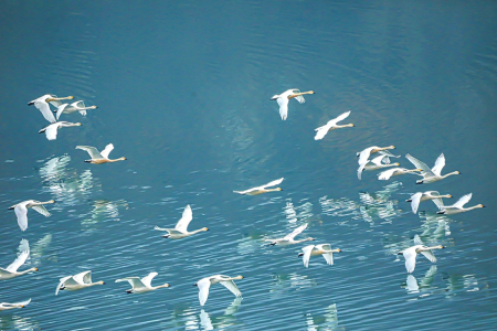 不只是桃河。近年來(lái),在陽(yáng)泉,龍華口水庫(kù)、平定縣二電廠調(diào)蓄水庫(kù)、尚怡水庫(kù)等河流匯集、水面寬廣的地方,經(jīng)常有天鵝、白鷺、鴛鴦、黑鸛、野鴨等各種野生鳥類出現(xiàn)。碧水長(zhǎng)流,這些美麗的精靈逐水飛翔嬉戲,構(gòu)成一幅生機(jī)勃勃的春日畫卷。