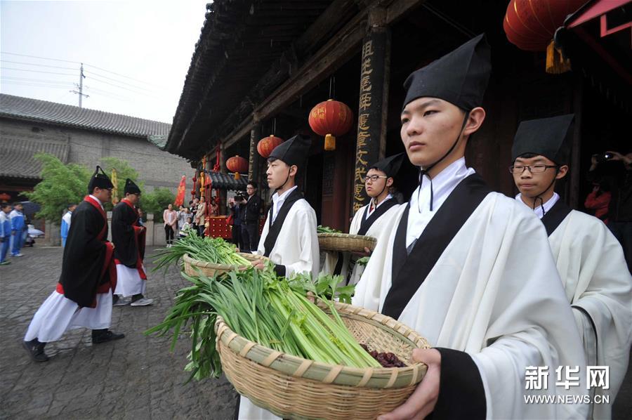 5月7日,山西運城新絳縣在當地千年古城絳州的文廟首次舉行釋菜禮大典,以弘揚傳承尊師古文明,吸引了城鄉(xiāng)眾多群眾和中小學生冒雨觀典。新華社發(fā)(高新生 攝)