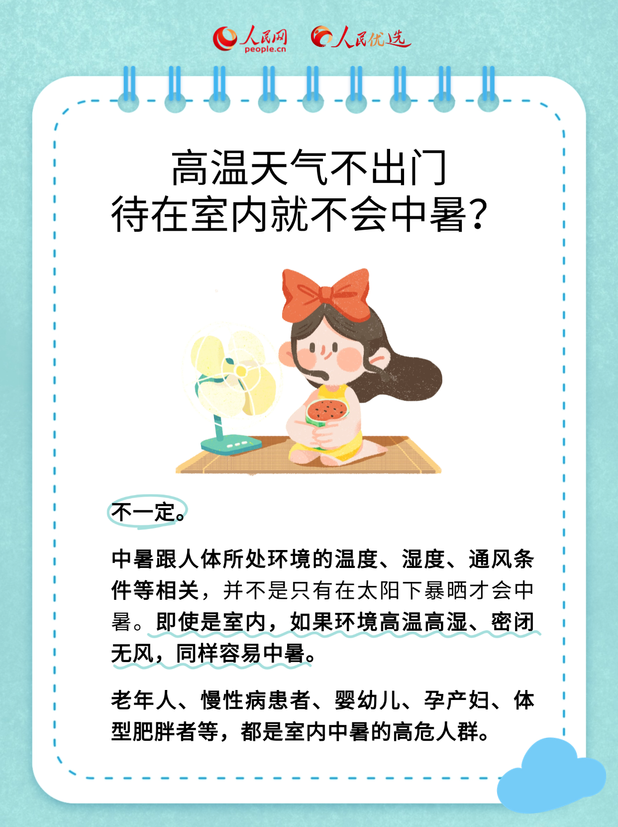 夏季天氣炎熱,如何避免中暑成為大家關(guān)注的熱點(diǎn)話題。每天哪個(gè)時(shí)間段最容易中暑?高溫天氣不出門,待在室內(nèi)就不會(huì)中暑嗎?不同場(chǎng)景下又該如何防暑?