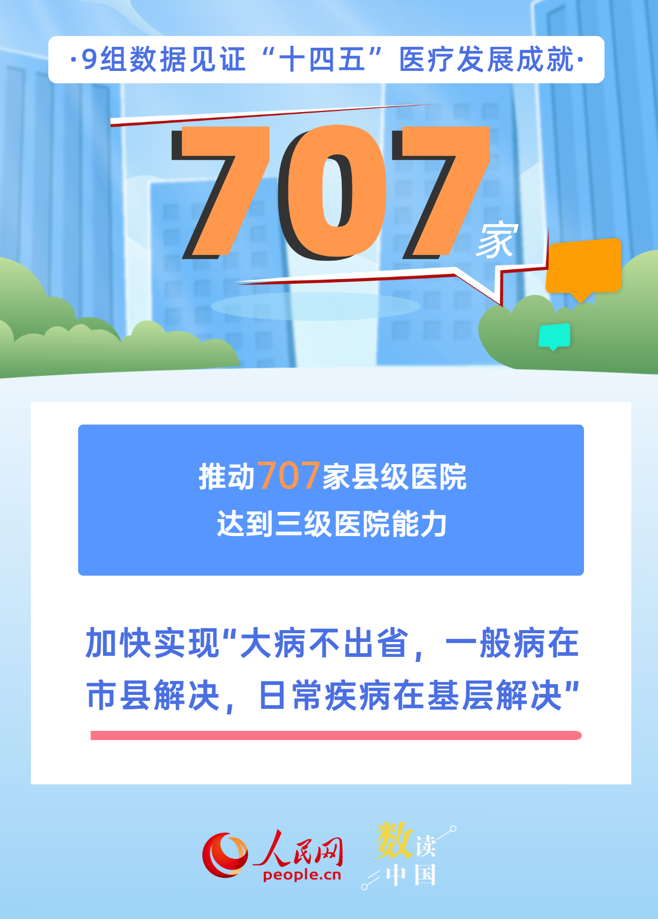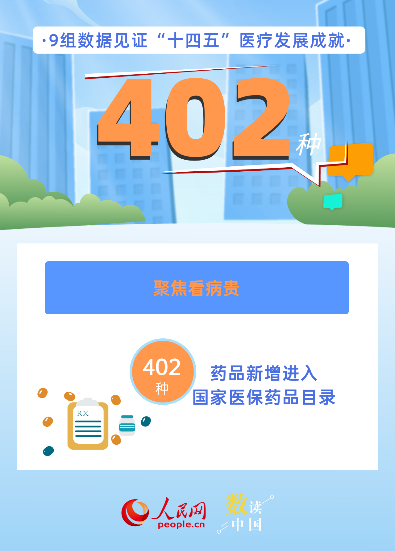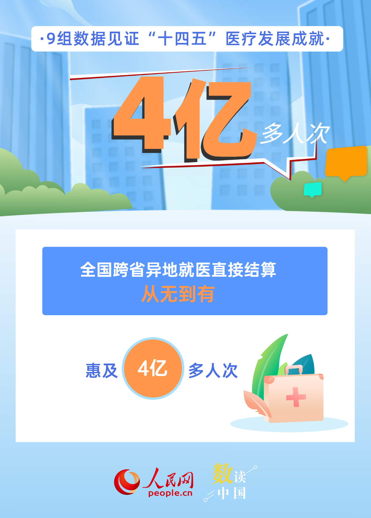新增布局114個國家區(qū)域醫(yī)療中心、全國跨省異地就醫(yī)直接結(jié)算惠及4億多人次、人均預(yù)期壽命達到79歲、402種藥品新增進入國家醫(yī)保藥品目錄……今年是“十四五”規(guī)劃收官之年,“十四五”時期,我國醫(yī)療衛(wèi)生事業(yè)發(fā)展取得哪些成就?一組海報帶你用數(shù)字感知。
