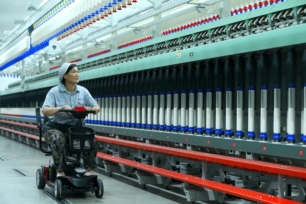 7月30日,山東省青島市一家科技紡織企業(yè)的工人在智慧紡紗生產(chǎn)線(xiàn)上巡檢。新華社發(fā)(梁孝鵬攝)
