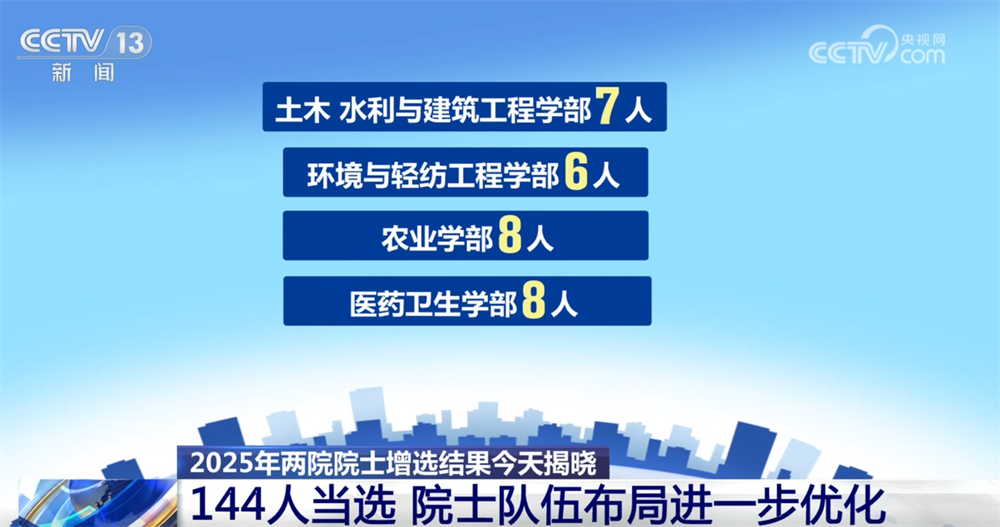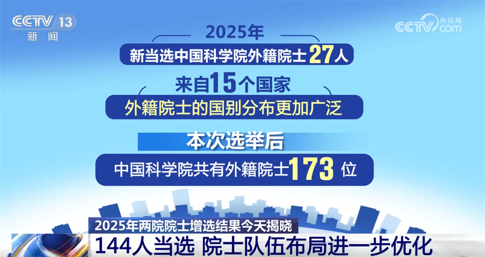 央視網(wǎng)消息:11月21日,2025年兩院院士增選結果正式揭曉,共有144人當選,院士隊伍的年齡結構、學科、地區(qū)和行業(yè)布局進一步優(yōu)化。