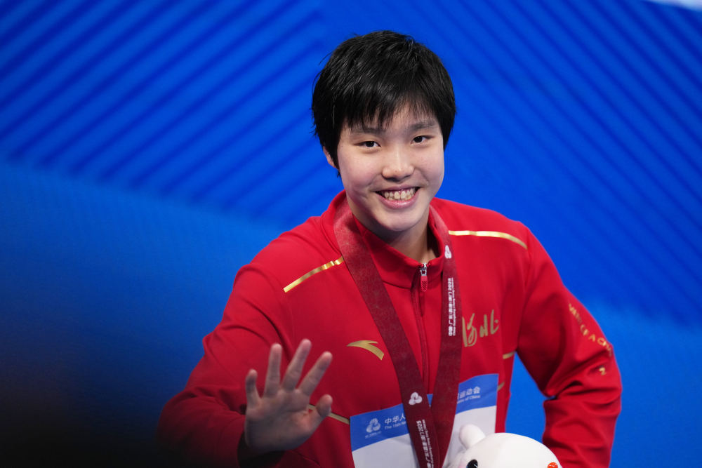 泳池里,年輕一代同樣耀眼。山東隊18歲新秀張展碩在男子1500米自由泳中稱雄,收獲本屆全運會個人第五金。13歲的河北選手于子迪在女子400米個人混合泳中折桂,以三金結束首次全運征程。