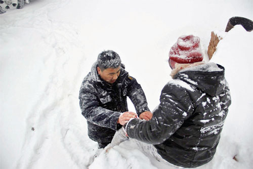 接到110指揮中心救援指令后,民警立即整裝出發(fā),并在途中與報(bào)警人周女士取得了聯(lián)系。車輛行至山間,救援難度超出了想象,整個(gè)山上都被大雪籠罩,白茫茫的一片,報(bào)警人也說不清自己遇險(xiǎn)的具體位置。救援民警想到與報(bào)警人通過微信聯(lián)系,獲得位置共享。在得到大概位置后,車輛卻遇到冰雪無法前行,救援民警只能徒步前往,在被冰雪覆蓋的山路上一腳深一腳淺地行走,也記不清一路上跌跌撞撞摔倒了幾次,眼看著快接近信息顯示位置了,卻無法準(zhǔn)確定位,只能繼續(xù)聯(lián)系報(bào)警人,讓她試著喊幾聲,以便確定具體方位,聽到聲音后,民警順著聲音方向前進(jìn),經(jīng)過一個(gè)多小時(shí)的艱難跋涉,終于在去往鳳林寺半山腰的樹林里找到了周女士。簡單了解了周女士傷情后,民警康艷軍小心翼翼地把周女士一路背下了山,令其脫離了險(xiǎn)境。
