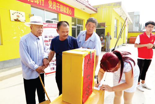 8月7日,“忻州愛心公益行動”團(tuán)隊一行一百多人,穿著統(tǒng)一的紅馬甲,一大早就出發(fā),驅(qū)車來到了距忻州市區(qū)十幾公里的蘭村鄉(xiāng)晏村。剛進(jìn)村委會大院,就看到了等候著的宿香玲一家以及鄉(xiāng)政府、村委會的工作人員?!瓣P(guān)愛貧困生,共筑大學(xué)夢”,紅色醒目的條幅傳遞出了大家此行的目的和心聲。此次,“忻州愛心公益行動”團(tuán)隊不僅為貧困學(xué)生宿香玲一家?guī)砹松钣闷泛腿沼闷罚宜蛠砹速Y助宿香玲完成大學(xué)學(xué)業(yè)的善款3萬余元。當(dāng)天晏村村委會黨員干部們也主動牽頭,開展“兩學(xué)一做”先鋒行、黨員干部獻(xiàn)愛心活動,現(xiàn)場為宿香玲籌得善款930元。新希望學(xué)校代表也為宿香玲一家送來了米面油等生活用品以及1000元現(xiàn)金。