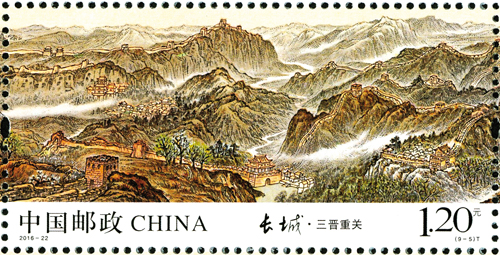 中國萬里長城是世界上修建時間最長、工程量最大的冷兵器戰(zhàn)爭時代的國家軍事性防御工程,是中華民族的古建瑰寶,凝聚著我們祖先的血汗和智慧,是中華民族的象征和驕傲。長城有極高的旅游觀光價值和歷史文化意義,是中華民族古老文化的豐碑和智慧結(jié)晶,象征著中華民族的血脈相承和民族精神。1961年,長城被列為國家級重點文物保護(hù)單位,1987年,被列為世界文化遺產(chǎn),2002年,被列為世界新七大奇跡。1984年,鄧小平、習(xí)仲勛作出“愛我中華,修我長城”的題詞,2006年,國務(wù)院頒布了《長城保護(hù)條例》。2015年,習(xí)近平總書記、李克強總理對長城保護(hù)工作作出了重要批示。今年,為紀(jì)念《長城保護(hù)條例》頒布10周年,中國郵政專門發(fā)行了《長城》特種郵票,一套九枚,分別為:關(guān)山滄海、薊遼天塹、燕趙雄風(fēng)、京畿屏障、三晉重關(guān)、長河飛龍、高原北望、大漠關(guān)城、絲路古道,總面值13.2元。全套9枚郵票中,山西有兩枚長城郵票。第5枚“三晉重關(guān)”、第6枚“長河飛龍”展現(xiàn)了山西十幾處長城景點,成為全國境內(nèi)長城入選最多的省份。長城景點濃縮方寸郵票之中,姿態(tài)萬千,各具特色。郵票色彩豐富,設(shè)計精美,充分體現(xiàn)出了長城的雄偉壯觀。