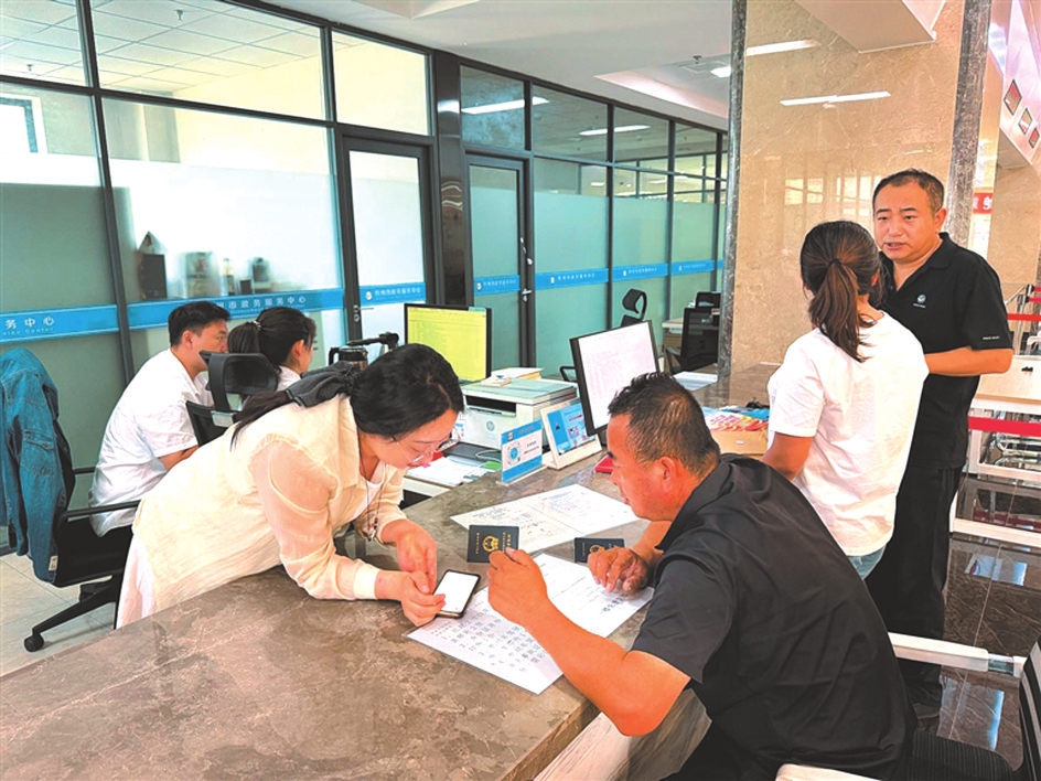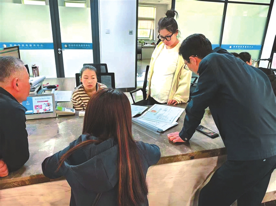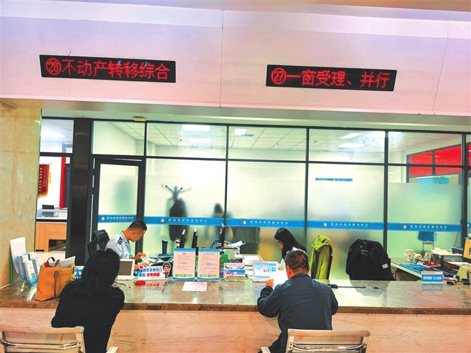 市政務(wù)大廳一樓不動產(chǎn)轉(zhuǎn)移綜合窗口,實(shí)現(xiàn)稅務(wù)+不動產(chǎn)登記一窗受理、并行辦理,日均辦理400件以上。