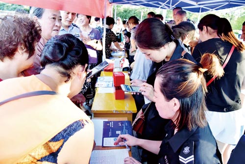 活動中,內保支隊民警向群眾詳細講解了平臺的便民功能、注冊步驟及領取小禮品流程,積極倡導廣大市民主動關注、注冊、應用平臺。期間,宣傳民警共發(fā)放宣傳資料500余份,現(xiàn)場關注、注冊230人,取得了良好的社會效果。圖為市民在現(xiàn)場掃碼(記者 徐國華)